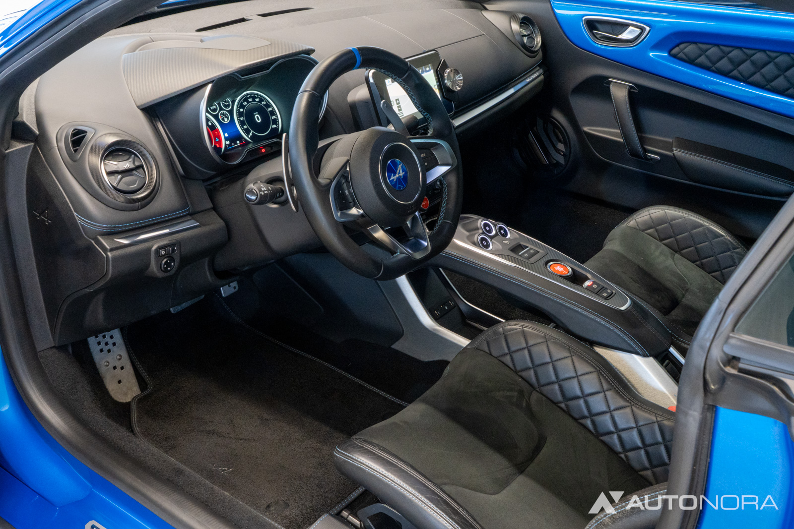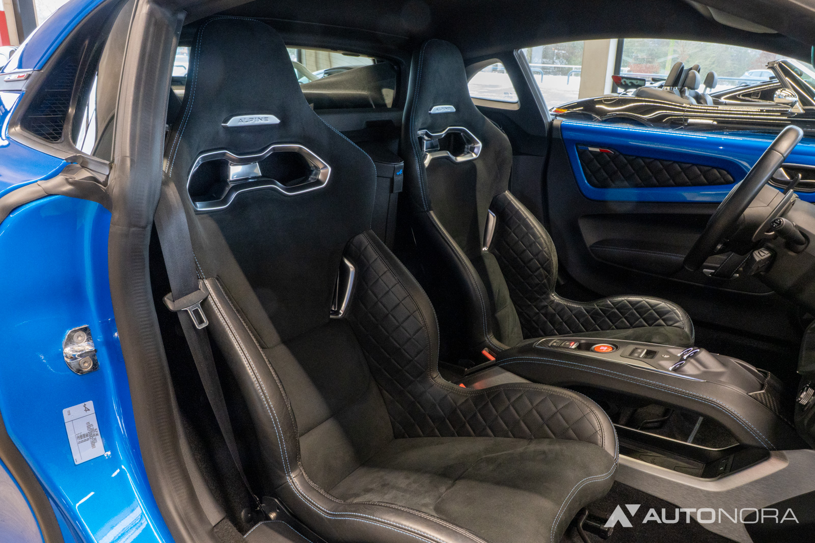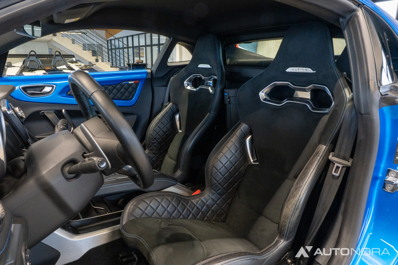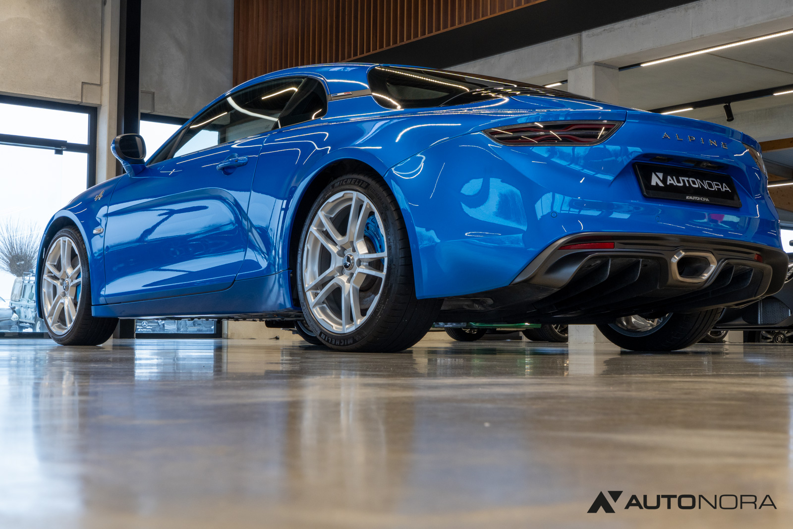 Innenausstattung Dinamica, Ablage-Paket (Ablagefach hinter Beifahrersitz, Gepäcknetz hinter Beifahrersitz), Aktive Sport-Abgasanlage, Alpine Logo auf den Kotflügeln vorne, Aluminium Pedalerie, Einparkhilfe vorn und hinten inklusive Rückfahrkamera, Farbige Bremssättel in Bleu Alpine, Fußmatten mit Ledereinfassung und Alpine-Logo, Fußstütze Beifahrer Aluminium, 18-Zoll Leichtmetallräder von Fuchs, Lenkrad mit blauem Alpine-Logo in der Mitte, Sicht-Paket (Außenspiegel elektrisch verstell-, heiz- und anklappbar, Innenspiegel mit Abblendautomatik), Sound-System Focal High Performance Sound Premium
