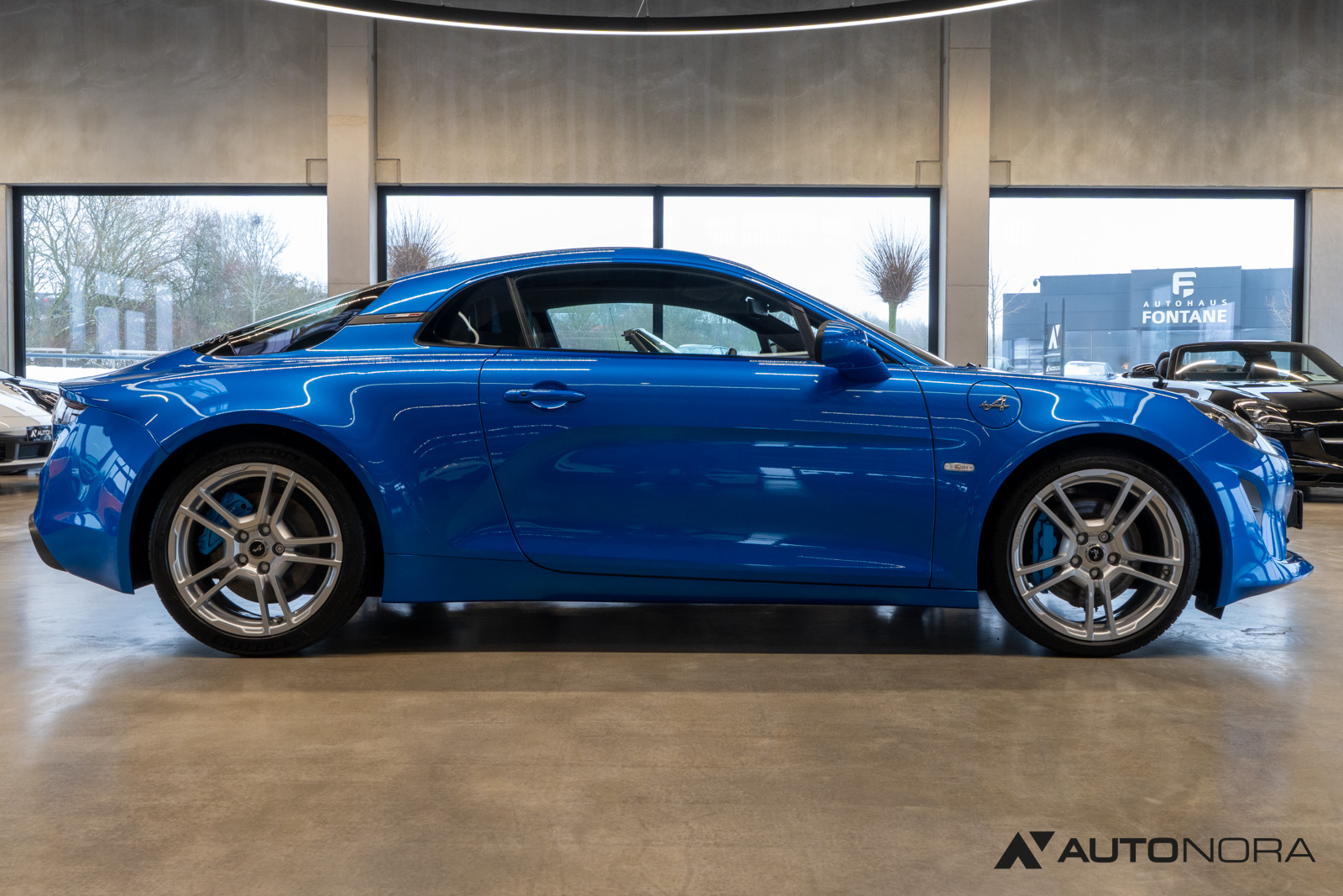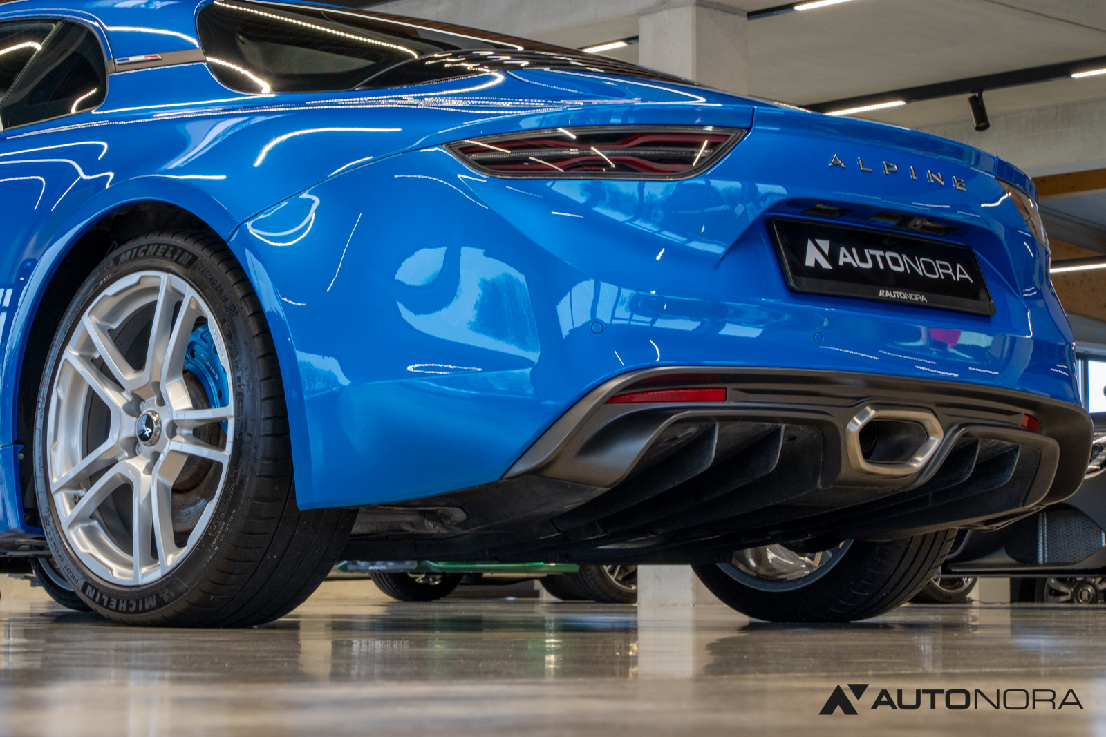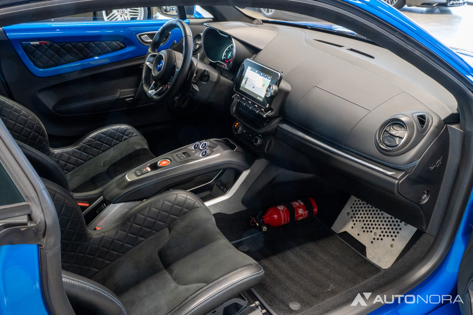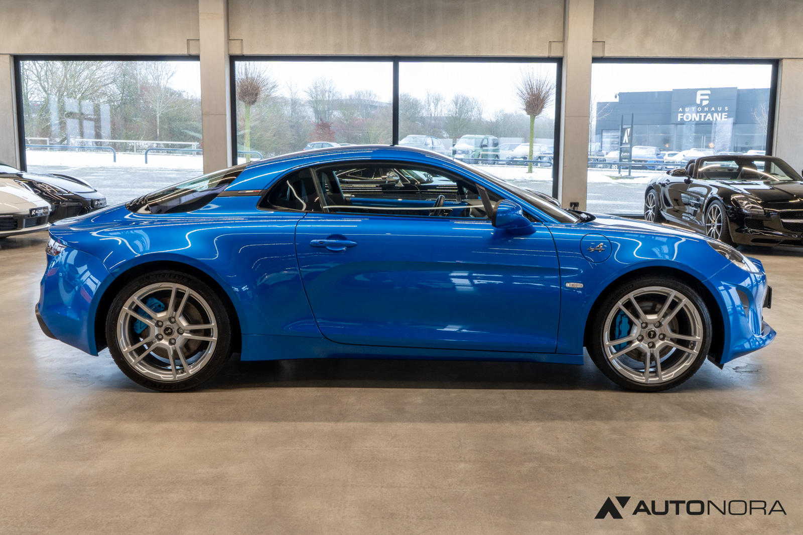 Innenausstattung Dinamica, Ablage-Paket (Ablagefach hinter Beifahrersitz, Gepäcknetz hinter Beifahrersitz), Aktive Sport-Abgasanlage, Alpine Logo auf den Kotflügeln vorne, Aluminium Pedalerie, Einparkhilfe vorn und hinten inklusive Rückfahrkamera, Farbige Bremssättel in Bleu Alpine, Fußmatten mit Ledereinfassung und Alpine-Logo, Fußstütze Beifahrer Aluminium, 18-Zoll Leichtmetallräder von Fuchs, Lenkrad mit blauem Alpine-Logo in der Mitte, Sicht-Paket (Außenspiegel elektrisch verstell-, heiz- und anklappbar, Innenspiegel mit Abblendautomatik), Sound-System Focal High Performance Sound Premium