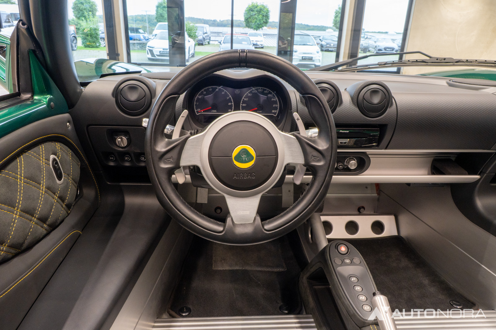 Premium Sport Pack Ebony Black/Slate Grey SuedeTex® Kombination mit Karbon Effekt-Ledereinsätzen, SuedeTex® Mittelkonsole, schwarze Fussmatten, Premium Sport Lenkrad, Türverkleidung in SuedeTex®, Kontrastnähte in gelb, Klimaanlage, Einparkhilfe hinten, Convenience Pack, Leichtmetallräder in der Farbe Diamond Cut (17 Zoll vorne und 18 Zoll hinten), Pioneer Navigationssystem