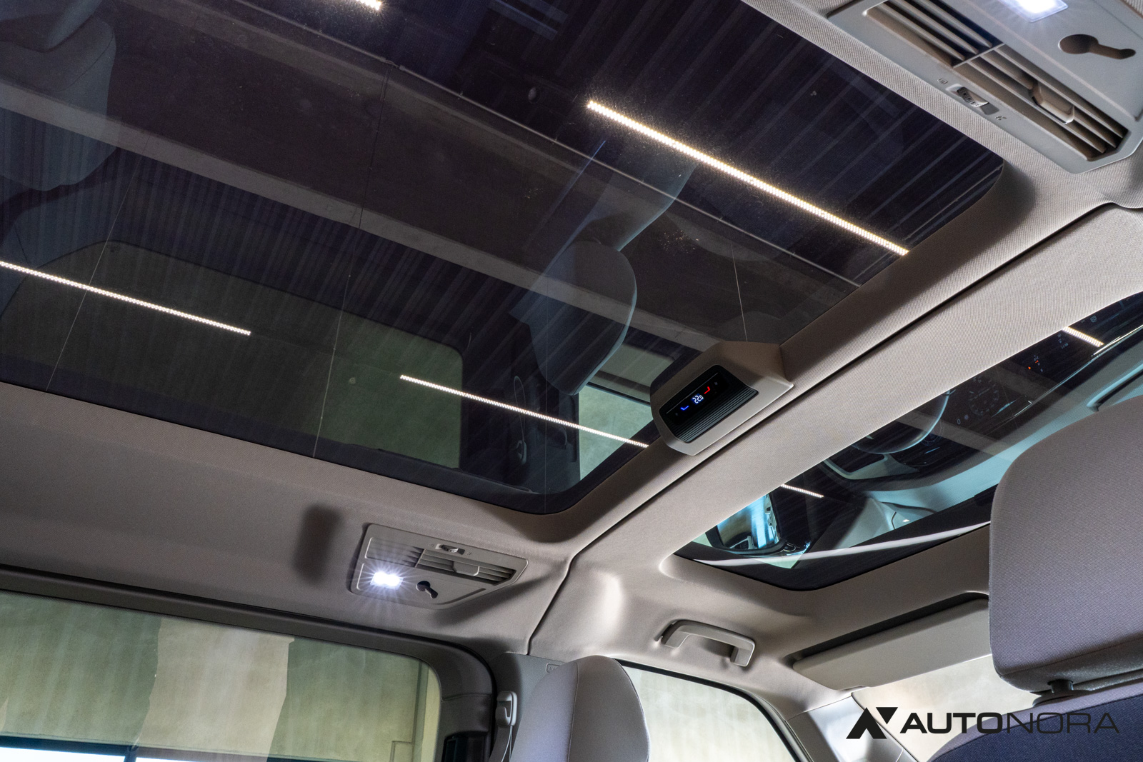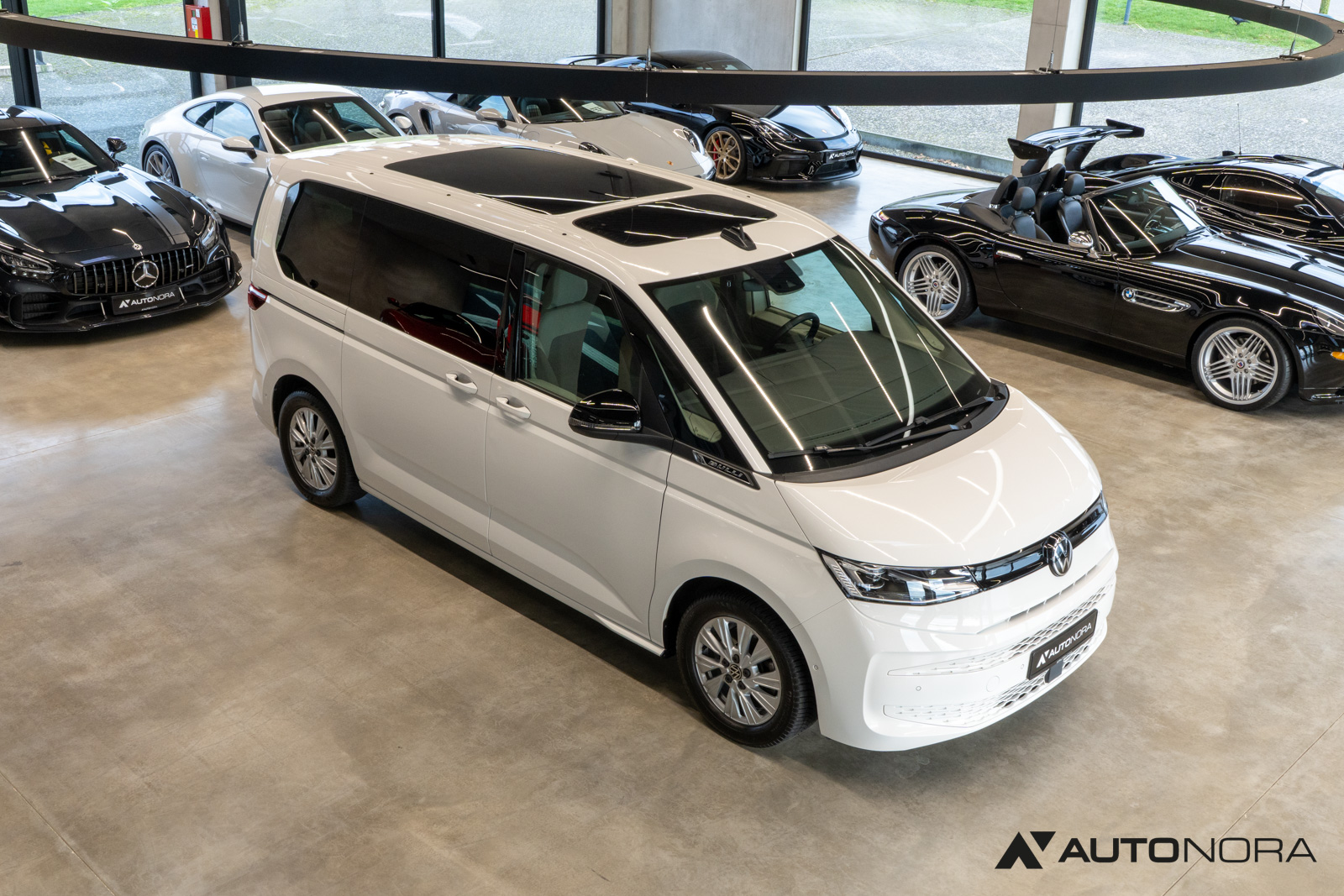 N0A Bi-ColorSitzbezüge in Stoff, Dessin Bright Dots, 4A3 Sitzheizung für beide Sitze im Fahrerhaus, links und rechts getrennt regelbar, 0NP Bulli Plakette am Kotflügel, ohne Multivan-Schriftzug auf der Heckklappe, 0TC Textilfußmatten im Fahrerhaus, 1M6 Anhängevorrichtung anklappbar, mit elektrischer Entriegelung (einschließlich Gespannstabilisierung), 1U1 Lange Bodenschienen bis Fahrer- und Beifahrersitz als Vorbereitung für den Multifunktionstisch/die Mittelkonsole, 2MH Dynamikfahrwerk inklusive Tieferlegung, 4K5 Zentralverriegelung mit schlüssellosem Schließ- und Startsystem Keyless Advanced ohne Safesicherung, 4S1 Armlehnen für Fahrer- und Beifahrersitz, beidseitig, mit elektrischer Lendenwirbelstütze und Klapptisch, 7AL Diebstahl-Alarmanlage mit Innenraumüberwachung, Back-up-Horn und Abschleppschutz, 7J2 Digital Cockpit Pro, 8QM 4 Fahrzeugschlüssel, 9IJ Mobiltelefon-Schnittstelle Comfort mit induktiver Ladefunktion, 9M5 Kraftstoffbetriebene Zusatzheizung, P2F Parkpaket Basic (Parklenkassistent Park Assist und Einparkhilfe im Front- und Heckbereich, Rückfahrkamera Rear View), PT3 Easy Open Paket Basic (Elektrische Heckklappe (öffnend und schließend) mit Easy Open und Easy Close-Funktionen, Schiebetüren links und rechts mit Easy Open und Easy Close-Funktion), QC3 Scheiben im Fond stark abgedunkelt, QE5 Schubladen unter den äußeren Sitzen im Fahrerraum und Fahrgastraum und 2 Abfallbehälter, Z2H Top Paket (Panoramaglasdach, abgedunkelt, zweiteilig, IQ.LIGHT-LED-Matrix-Scheinwerfer mit LED-Tagfahrlicht, Leuchtweitenregulierung, dynamisch, mit dynamischem Kurvenfahrlicht, Tagfahrlichtschaltung mit Assistenzfahrlicht sowie Coming home und Leaving home-Funktion, Dynamische Fernlichtregulierung Dynamic Light Assist, Schlechtwetterlicht inklusive Abbiegelicht, LED-Rückleuchten, abgedunkelt, Scheiebenwischer-Intervallschaltung mit regensensor für die Frontscheibenwischer, 3-Zonen Klimaanlage Air Care Climatronic mit zusätzlichem Bedienteil im Fahrgastraum, Sicherheitsinnenspiegel, automatisch abblendend, Sonnenblenden mit Spiegel, beleuchtet), Z2M Assistenzpaket Basic (Spurwechselassistent Side Assist inklusive Blind Spot Detection, Ausparkassistent und Ausstiegswarner, Car2X, Automatische Distanzregelung ACC stop & go)