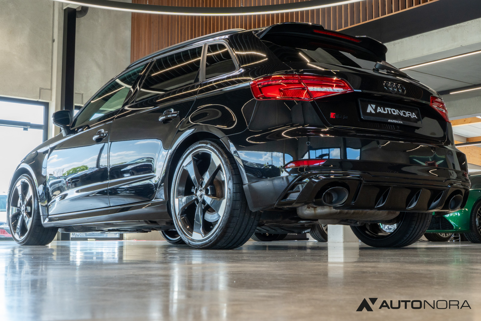 Cornering and all-weather lights, Storage package, Acoustic windscreen, Aluminium look interior, Audi drive select, Exterior mirror housings in gloss black, Bluetooth interface, Decorative inlays 3D look Luv titanium grey, Anti-theft alarm system, Parking aid plus, Door sill trims with aluminium inlay, Electromechanical parking brake, Child safety lock, ISOFIX child seat mounting points and Top Tether for the outer rear seats, Comfort automatic climate control, LED rear lights with dynamic indicator, LED headlights, Light/rain sensor, Light package, Front centre armrest, Pedals and footrest in stainless steel, Progressive steering, Tyre pressure monitoring display, Tyre repair kit, RS sport exhaust system, RS sport suspension, Heated windscreen washer nozzles, front, Headlight cleaning system, Sport contour leather steering wheel in 3-spoke design with multifunction plus and shift paddles, flattened at bottom, Start-stop system, Front seats with height adjustment and extendable thigh support