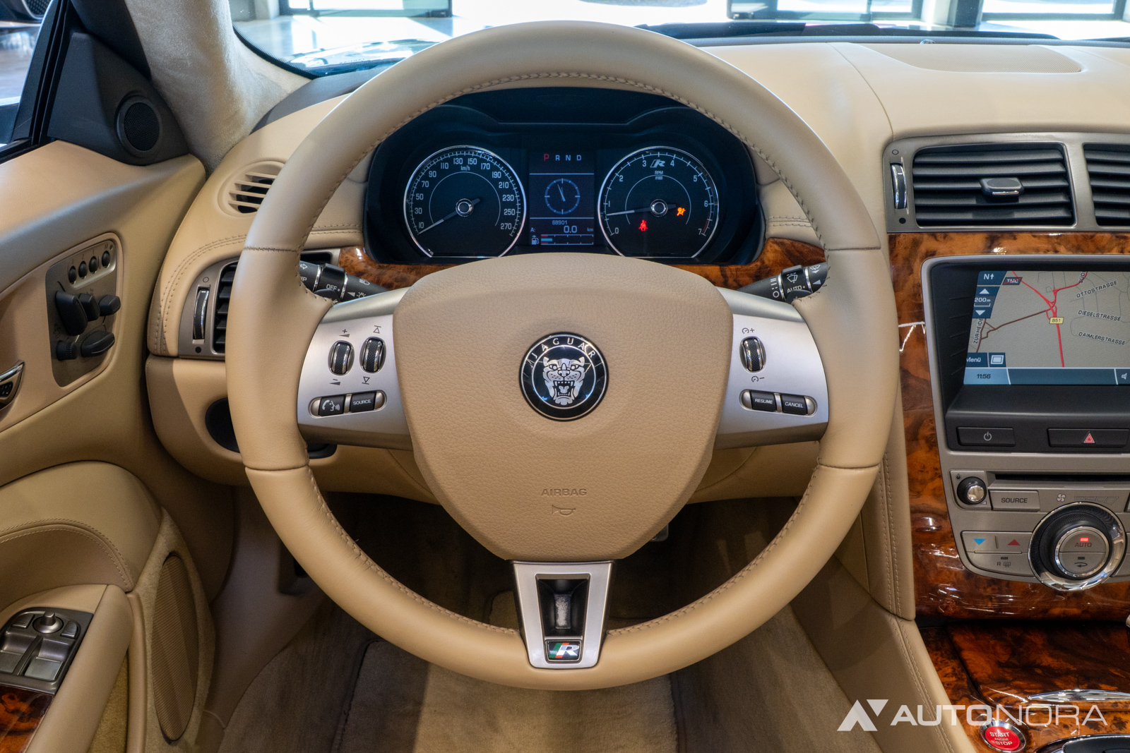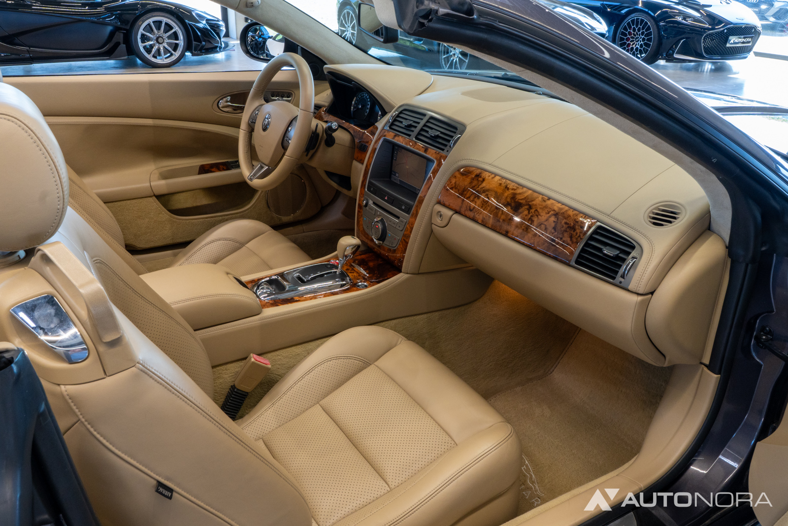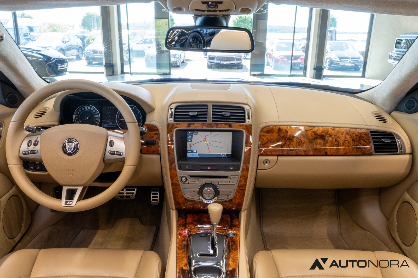 Sports seats in Caramel leather, front seat heating, adaptive cornering lights, Alston Canvas headlining, interior package in burr walnut, Jaguar sound system, tyre pressure monitoring, R performance brakes, keyless locking system, air quality sensor, electrically adjustable seats (16-way) with memory function, universal garage door opener, hood colour black
