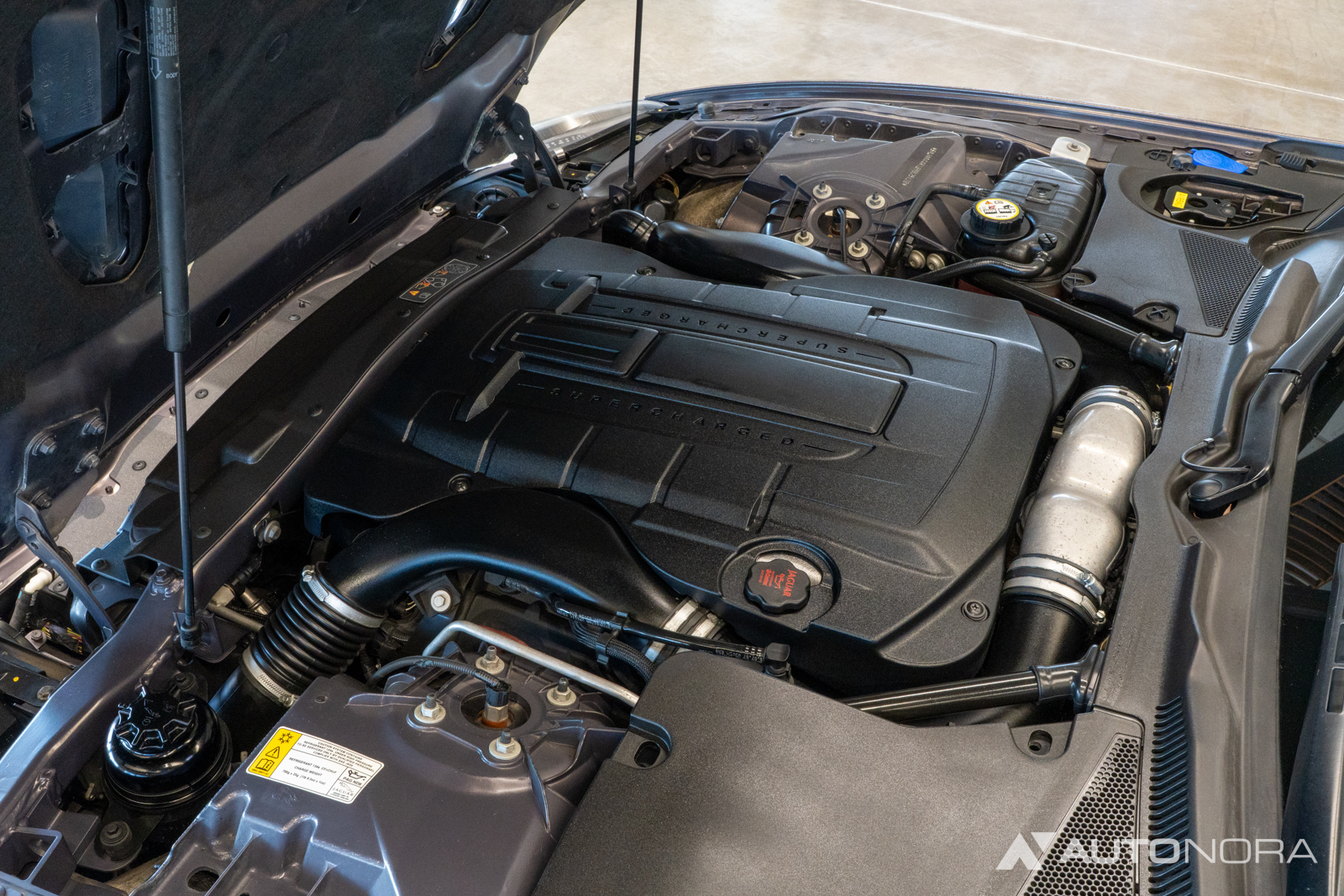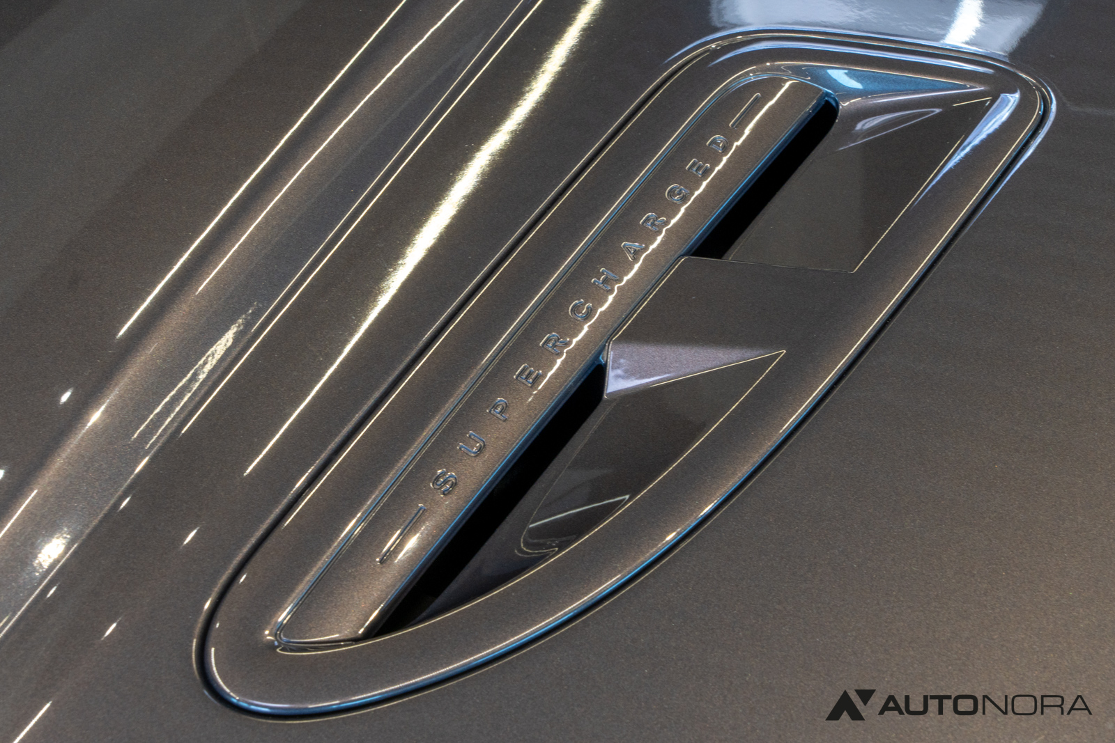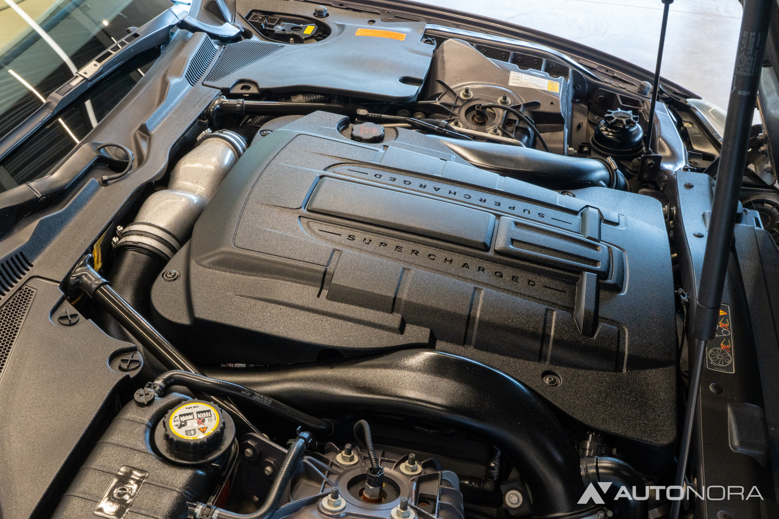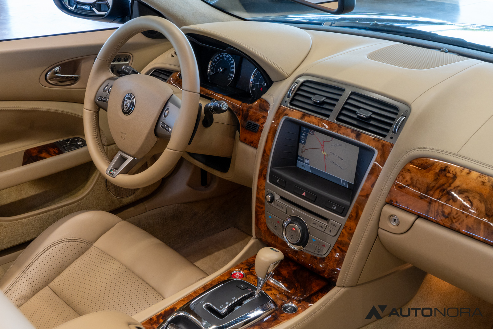 Sports seats in Caramel leather, front seat heating, adaptive cornering lights, Alston Canvas headlining, interior package in burr walnut, Jaguar sound system, tyre pressure monitoring, R performance brakes, keyless locking system, air quality sensor, electrically adjustable seats (16-way) with memory function, universal garage door opener, hood colour black