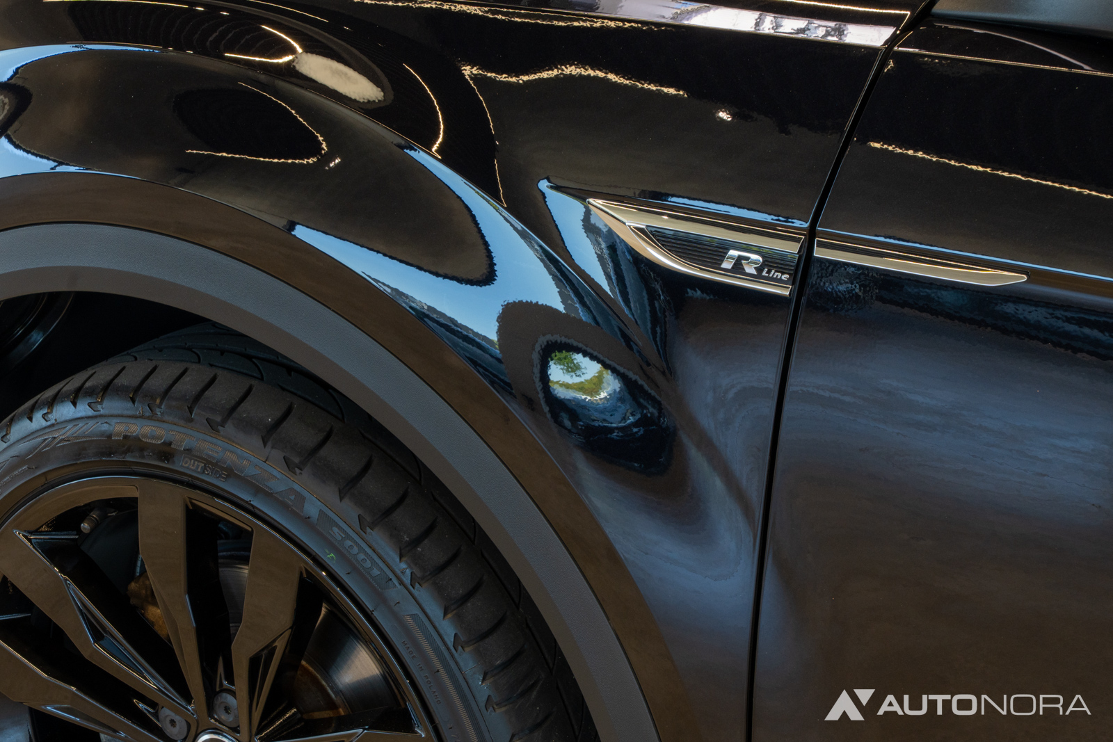 N0V Parties centrales des sièges avant et des places arrière extérieures en tissu Carbon Flag, joues intérieures en ArtVelours, 4A3 Sièges avant chauffants, 3S2 Barres de toit noires, 4E7 Hayon de coffre à ouverture et fermeture électriques, Hayon de coffre à ouverture et fermeture électriques, Hayon de coffre à ouverture et fermeture électriques, 4F2 Système de verrouillage et de démarrage sans clé Keyless Access, Système de verrouillage et de démarrage sans clé Keyless Access, Système de verrouillage et de démarrage sans clé Keyless Access avec sécurité SafeLock, 9AK Climatisation automatique Air Care Climatronic à régulation de température 2 zones avec filtre anti-allergène, 9S0 Digital Cockpit Pro multicolore, 9WJ App-Connect y compris App-Connect Wireless pour Apple CarPlay et Android Auto, KA1 Caméra de recul Rear View, PAM Accoudoir central avant incluant interface USB-C et prise de recharge USB, PAV Dispositif d’attelage amovible, PFZ Pack d’assistance à la conduite Plus (rétroviseurs extérieurs rabattables électriquement avec fonction abaissement automatique côté droit, Blind Spot Sensor Plus avec assistant de sortie de stationnement et Lane Assist, projecteurs LED, réglage automatique de la portée des phares, assistant de feux de route Light Assist, Emergency Assist, régulateur de distance adaptatif ACC y compris fonction Stop&Go, limiteur de vitesse, assistant embouteillage Traffic Jam Assist), QR9 Reconnaissance des panneaux de signalisation, RBD Système de navigation Discover Media incluant streaming & internet, V30 Jantes alliage 19 pouces Suzuka en noir, WD1 Système d’alarme antivol Plus avec surveillance intérieure, WIJ Pack R-Line (habillage inférieur de porte couleur carrosserie, pare-chocs R-Line, aide au stationnement avant et arrière, inserts décoratifs Shadow Steel, éclairage d’ambiance blanc, volant multifonction en cuir avec palettes de changement de vitesses design R-Line), WSP Pack Confort des sièges (dossier du siège passager avant rabattable, soutiens lombaires à l’avant), WW1 Pack Hiver (gicleurs de lave-glace chauffants)